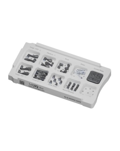 A collection of 14 Scan Flags iQ, 6 One Shot iQ, 6 Reverse iQ, 1 Control Plate iQ, screwdriver and tip (Hex 1.25), and a ScanLogiQ tray.